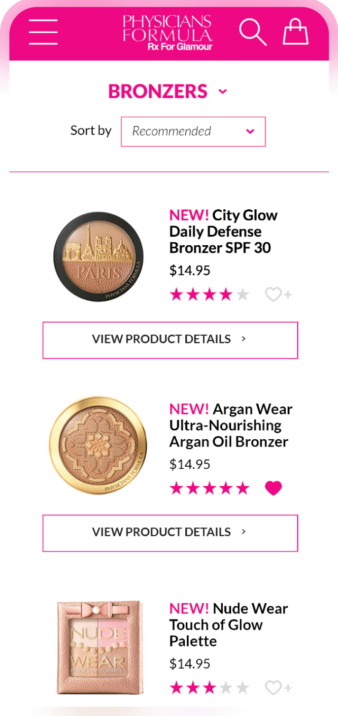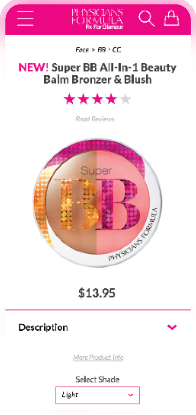 Incorporating strong branding elements across the site gave everything a distinctly “Physicians Formula look”, and our development team used best practices when developing the site on a custom .NET responsive framework.
